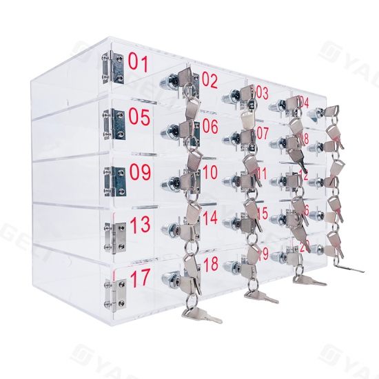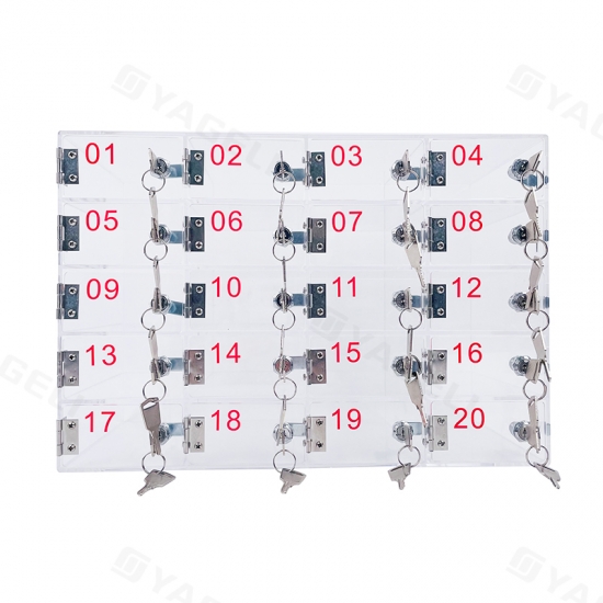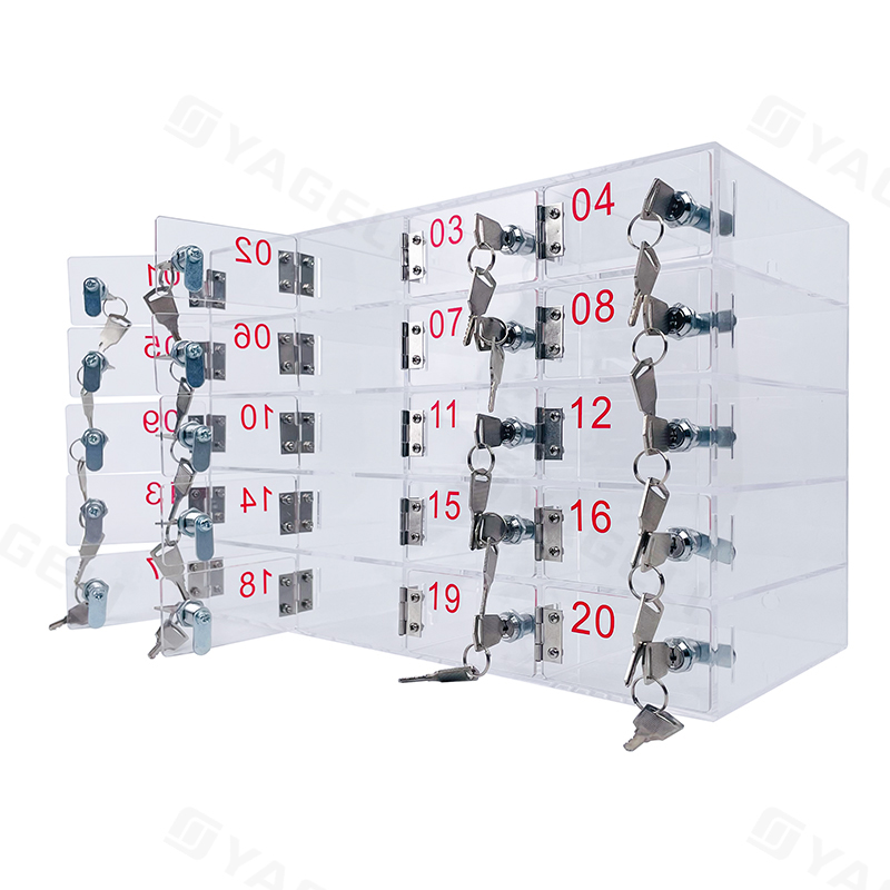 Dieser aus robustem, transparentem Acryl gefertigte Schrank bietet optimale Sichtbarkeit für eine einfache Geräteidentifizierung; seine 20 abschließbaren Fächer ermöglichen eine sichere, individuelle Aufbewahrung und beugen so Diebstahl vor; das vielseitige Design eignet sich für verschiedene Umgebungen wie Büros oder Schulen und ist somit eine praktische Lösung zum Organisieren und Schützen mehrerer mobiler Geräte.