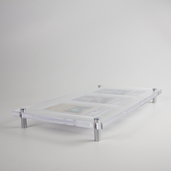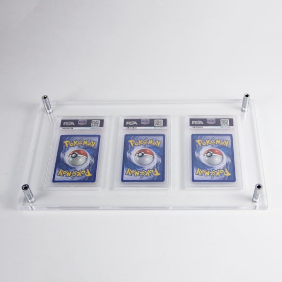 Die Hauptfunktion dieses Ständers besteht darin, drei bewertete Sammelkarten-Slabs (TCG-Slabs) zu präsentieren: Er hält jedes Slab sicher in einem separaten Fach im optimalen Betrachtungswinkel und hebt so das Artwork und die Bewertungsinformationen (z. B. PSA-Labels) hervor. Gleichzeitig dient er als Organisationshilfe, da er mehrere Slabs ordentlich anordnet (anstatt sie zu stapeln oder zu verstreuen) und sie so vor Kratzern und Beschädigungen schützt. Dadurch wird die visuelle Präsentation einer kleinen, sorgfältig zusammengestellten Sammlung für die private Vitrine oder den Einzelhandel aufgewertet.