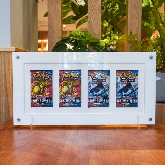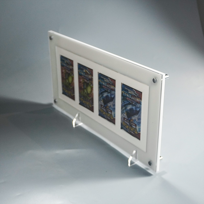 Dieses aus hochwertigem, kratzfestem Acryl gefertigte Display mit vier Fächern bietet zuverlässigen Schutz vor Staub, Kratzern und leichten Beschädigungen und bewahrt so den Zustand Ihrer Boosterpacks. Der schlichte weiße Rahmen und die transparenten Seitenwände rücken die Gestaltung der Packs optimal in Szene, ohne abzulenken. Dank der flexiblen Einsatzmöglichkeiten (Tisch- oder Wandmontage) lässt sich das Display an jedem Ausstellungsort anbringen. Im Gegensatz zur losen Aufbewahrung präsentiert es die Packs übersichtlich und kompakt und ist somit ein echter Blickfang. Praktische Aufbewahrung trifft auf ansprechende Ästhetik – ideal für private Sammlungen und kleine Verkaufsflächen.