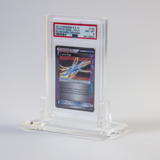 Dieser aus robustem, kratzfestem Acryl gefertigte Präsentationsständer bietet langlebigen Halt und Schutz für bewertete Sammelkarten (er verhindert Kratzer und leichte Stöße an den Kanten). Dank seines angewinkelten Designs sind die Vorderseite der Karte (und das Bewertungsetikett) aus einer angenehmen Betrachtungshöhe optimal sichtbar – anders als bei flachen Aufbewahrungsmöglichkeiten. Die transparente, minimalistische Konstruktion lenkt den Fokus auf die bewertete Karte und verleiht jeder Sammlungspräsentation ein professionelles und elegantes Aussehen. Der stabile Standfuß verhindert ein Umkippen – selbst auf unebenen Oberflächen – und sorgt so für eine zuverlässige und ansprechende Präsentation.